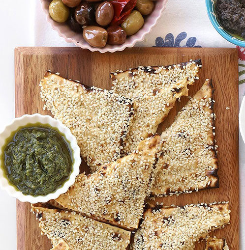 3. Mix all the filling ingredients together. Cut each matzo in 4 (try using scissors). Place a tablespoon of filling on top of each ¼ and close to form a triangle. Dip into beaten egg and place on a baking pan, without leaving space between the bourekas. (Sprinkle sesame seeds if using.)