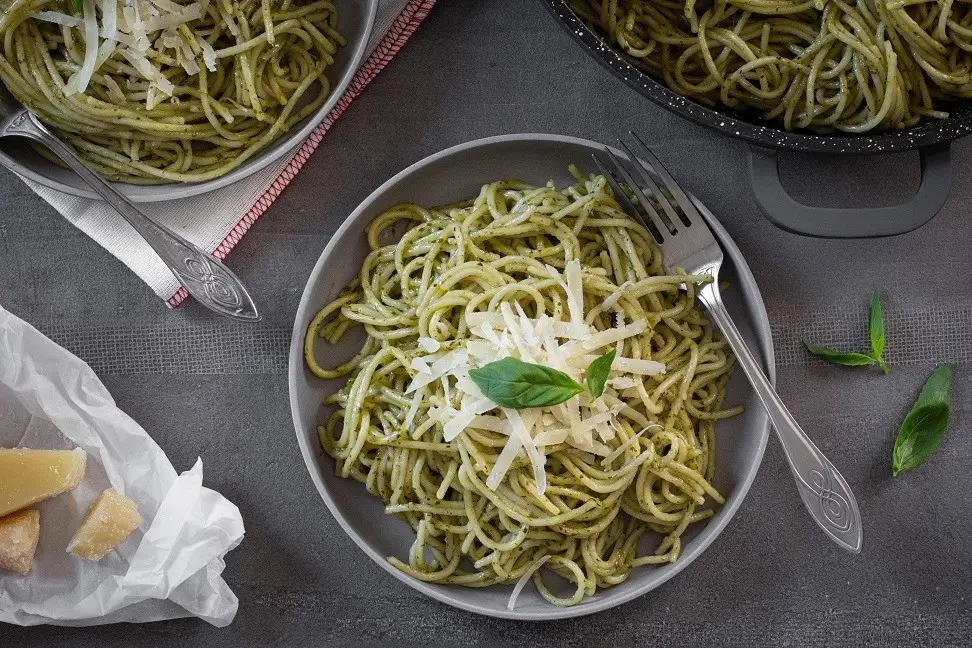 One-Pot Spaghetti with Creamy Pesto Sauce