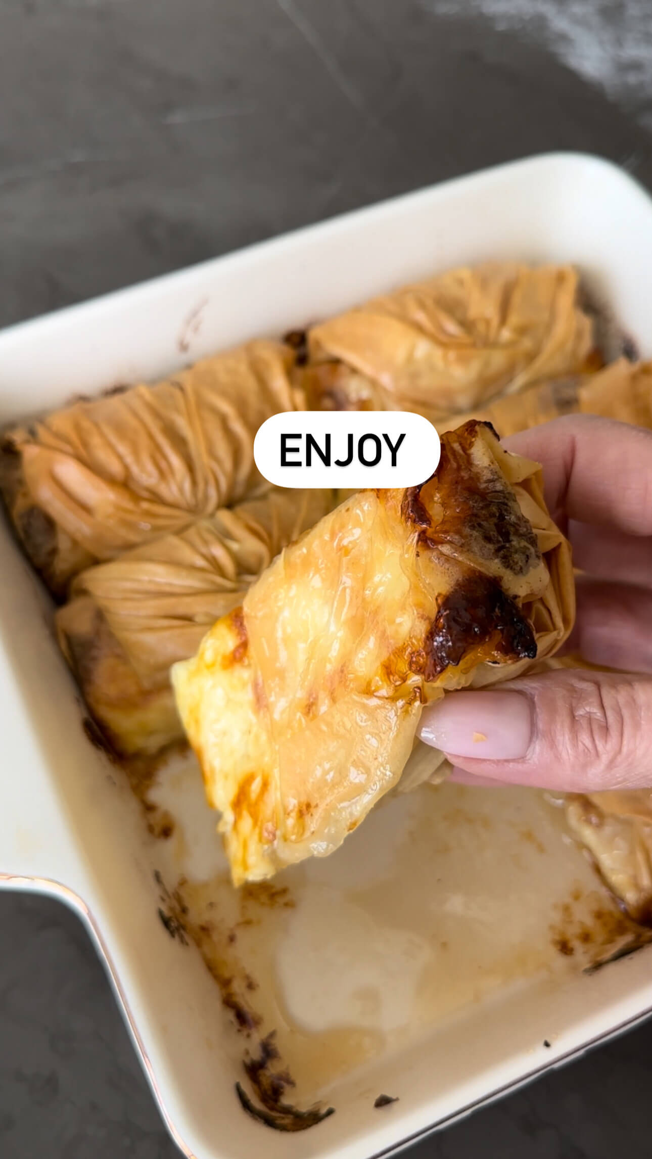 10. When bourekas are ready, remove from oven and brush with warm syrup. Serve while still warm and enjoy