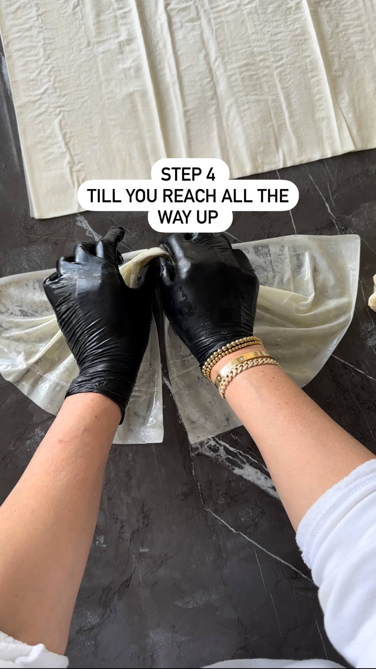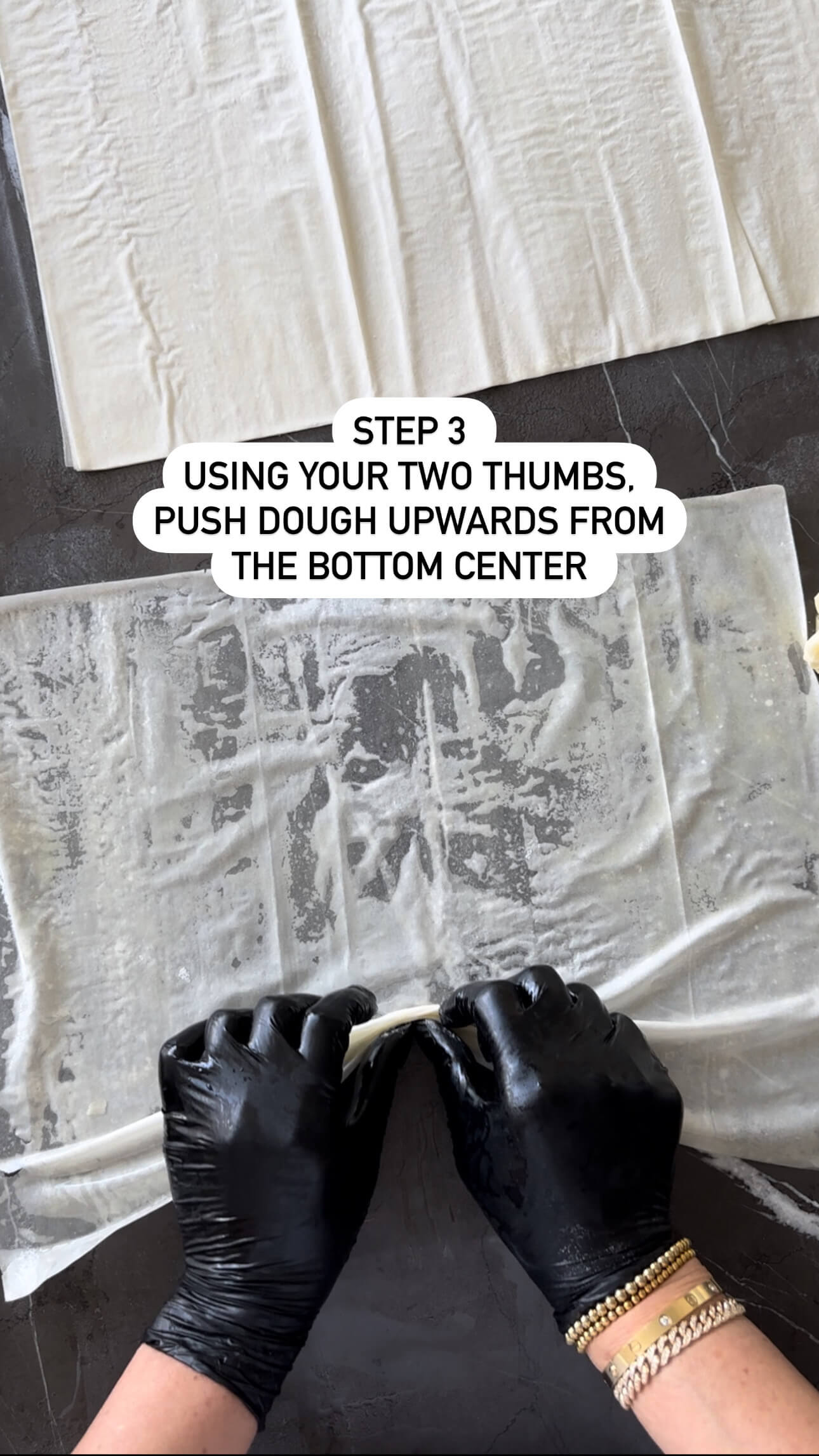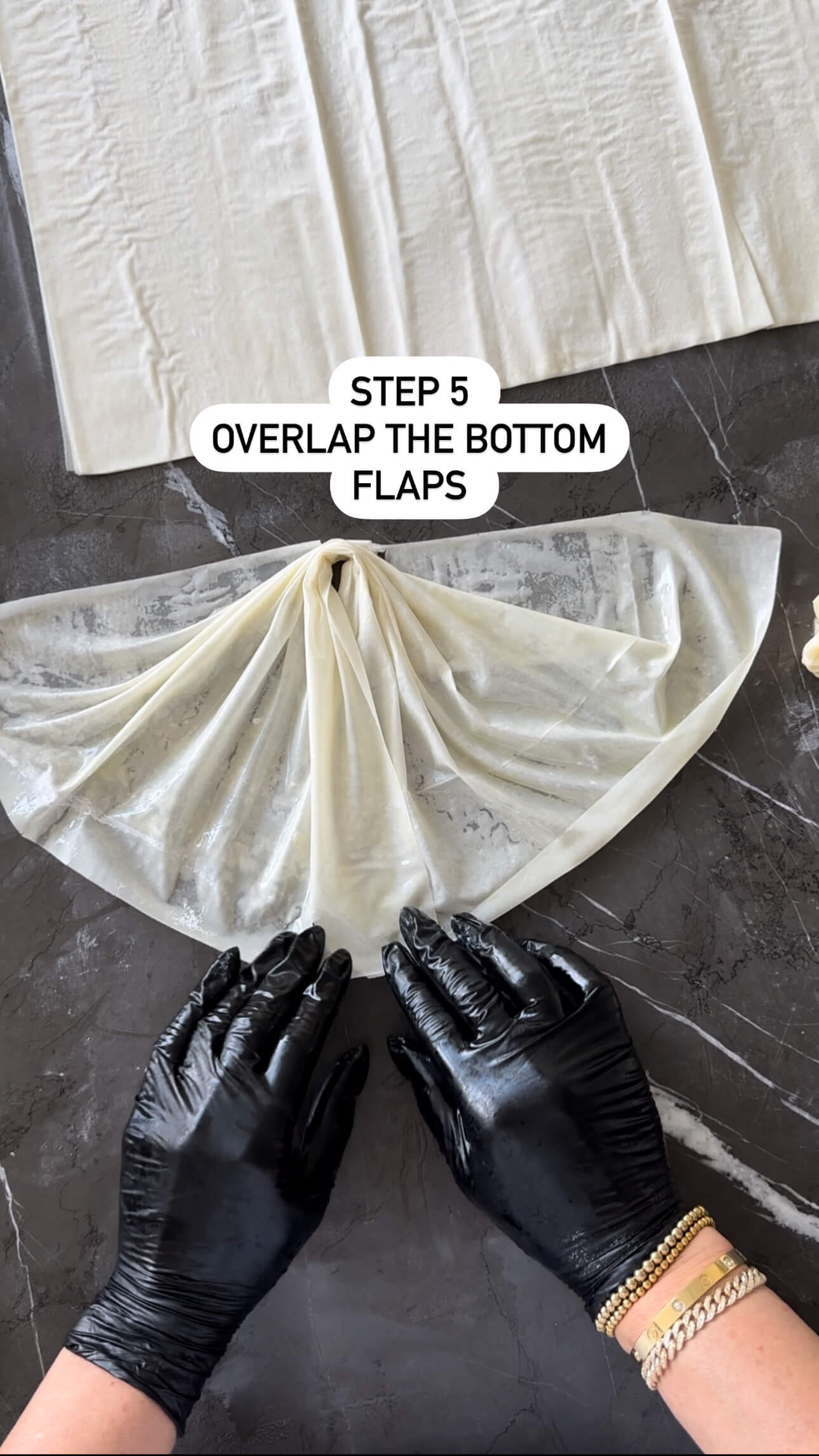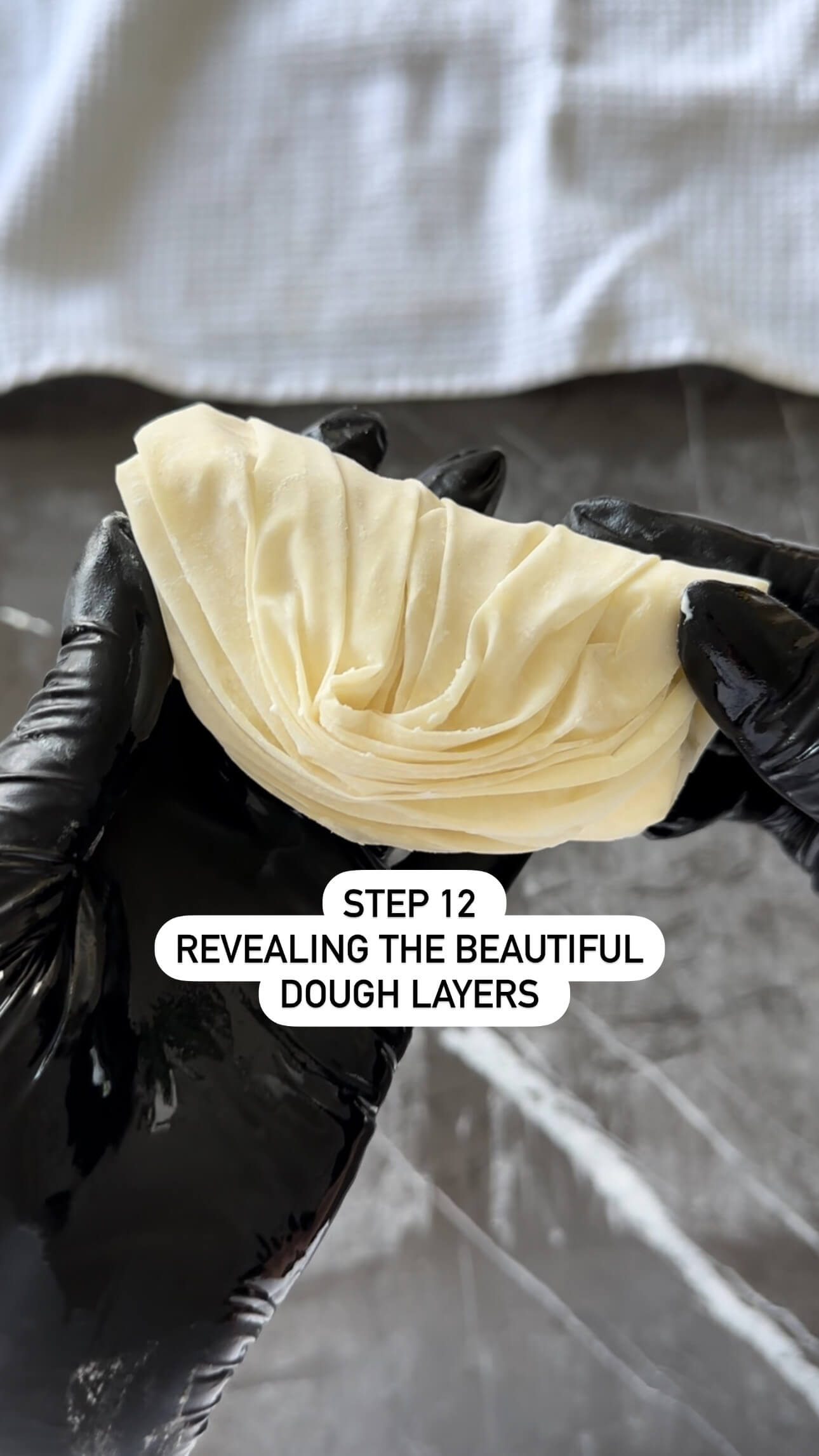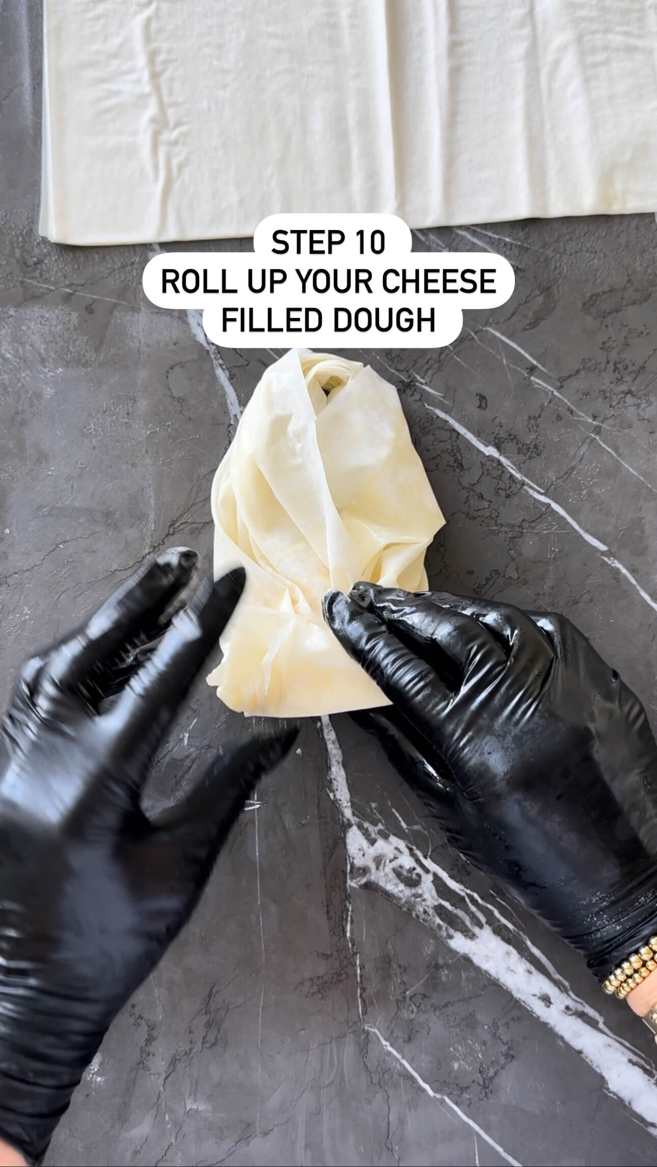 3. Unroll the thawed filo dough and cover with a clean kitchen towel to prevent it from drying out.