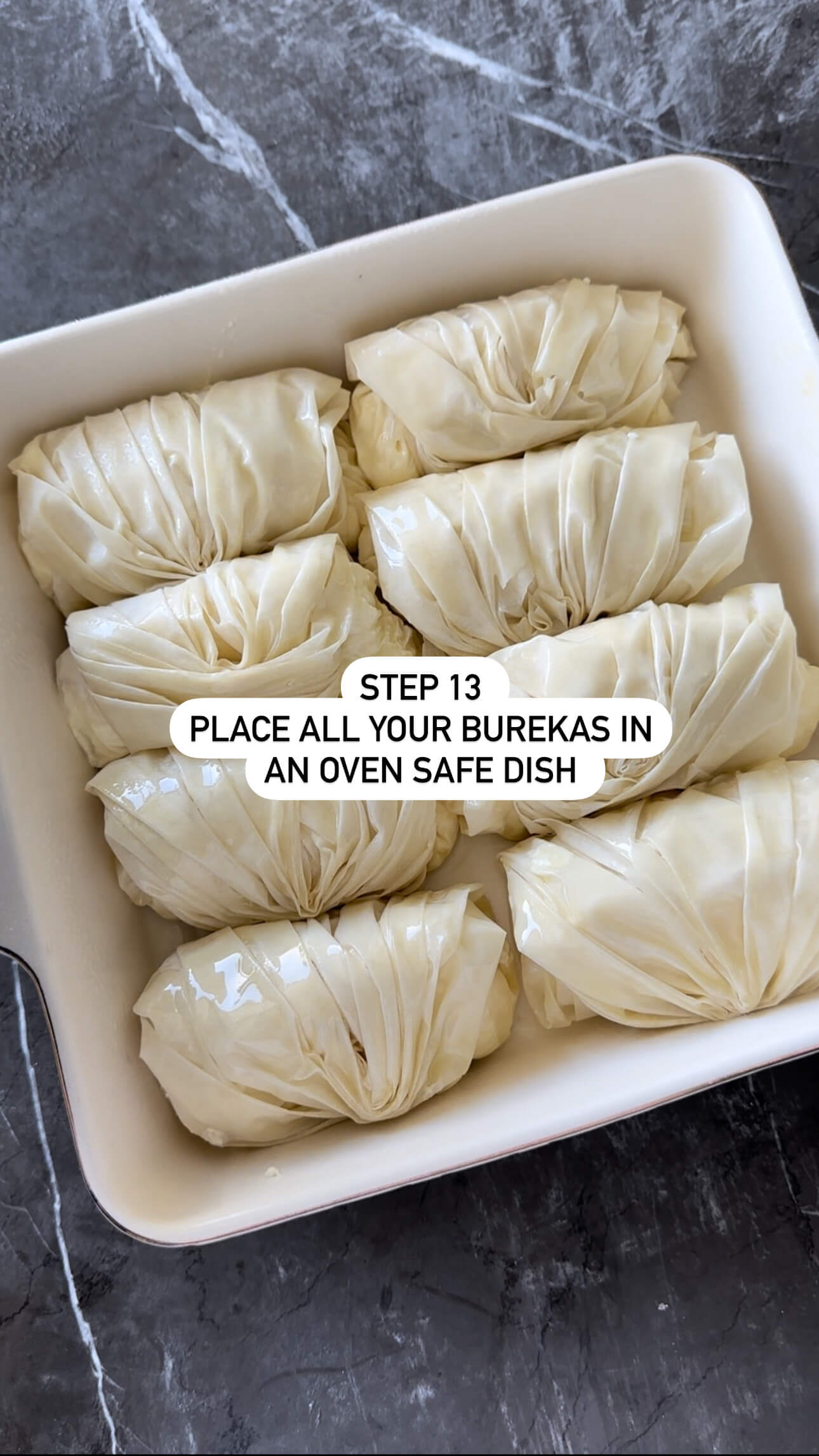7. Repeat the process for the remaining dough and place the rolls in a lightly greased baking dish. Spray the top with oil or melted butter.
