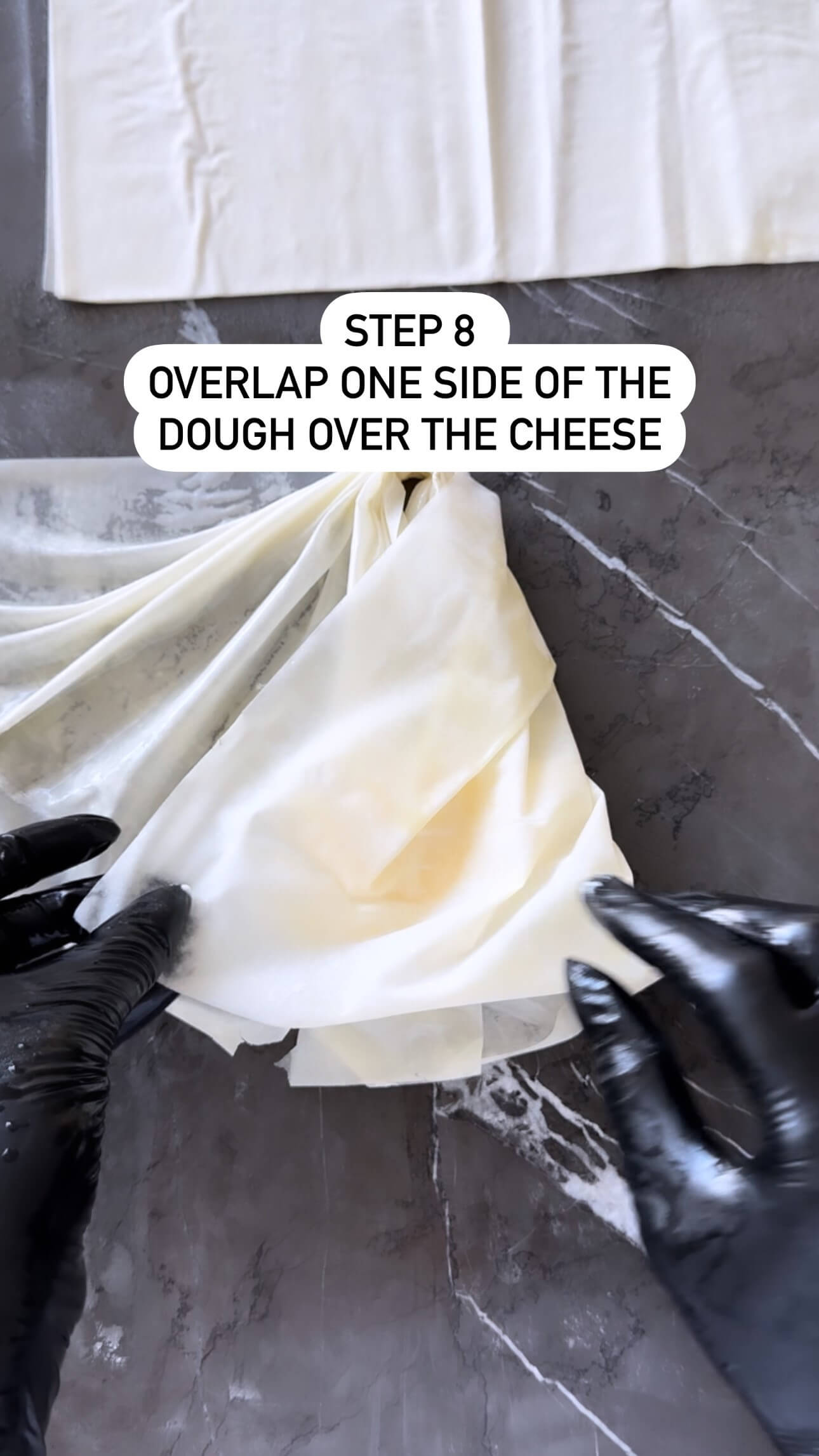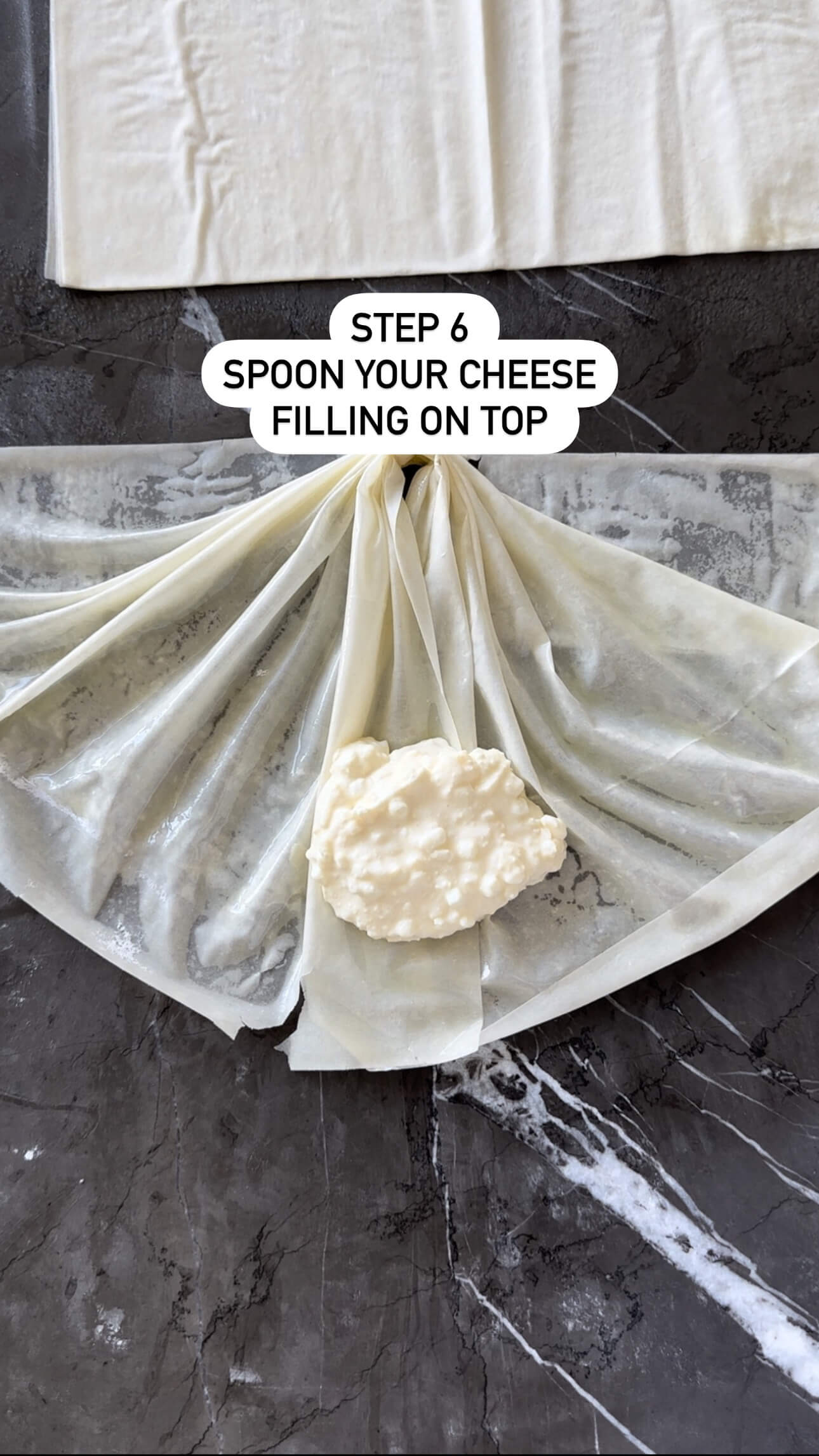 5. Fold the dough in an accordion-like manner, then place a spoonful of cheese filling in the center.