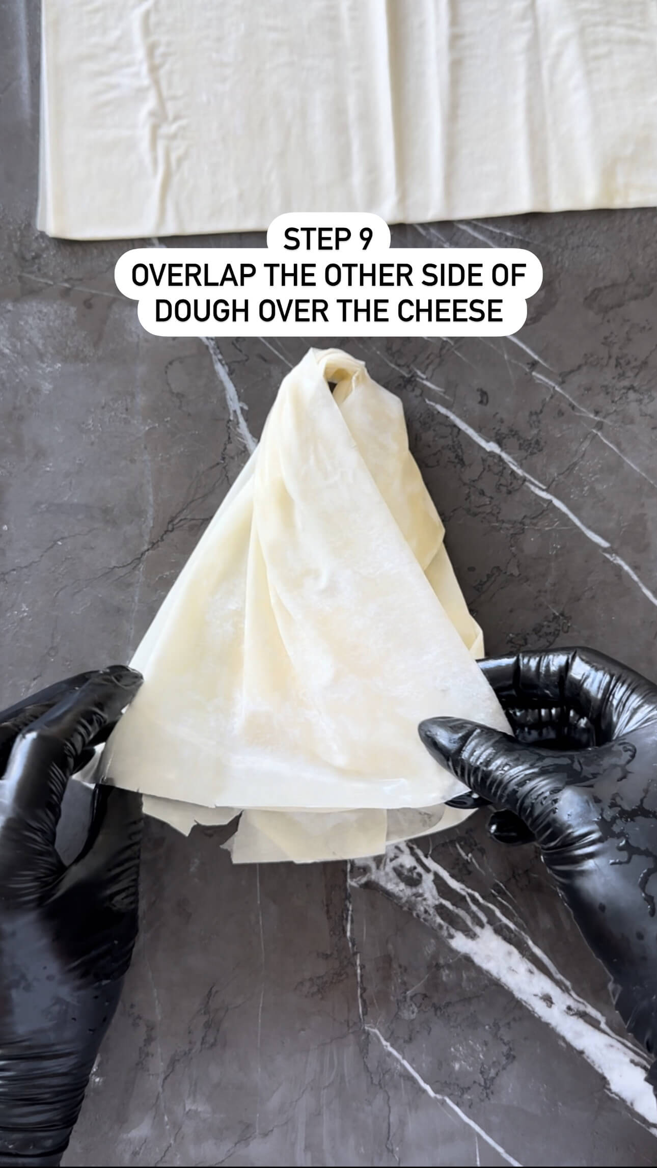 6. Add an extra slice of Tnuva Edam Cheese and fold the flaps over the filling, rolling the dough to create a decorative design.
